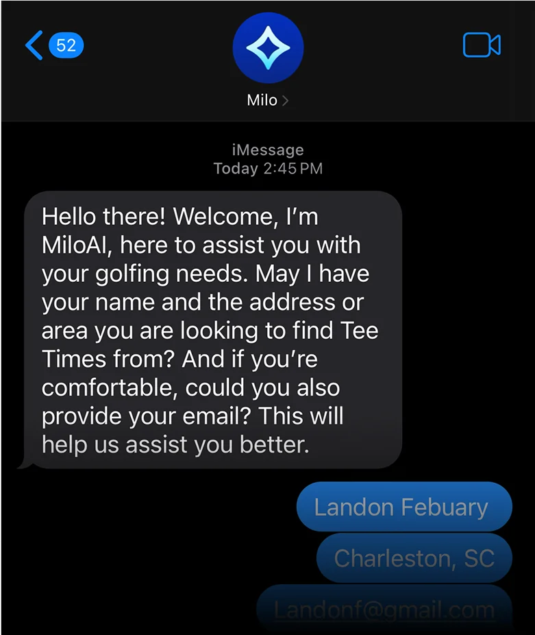 Milo is your personal concierge who lives right in your texts. From coordinating golf tee times and pickleball games to scheduling social plans with friends, Milo handles the back-and-forth for you. No apps, no stress—just instant, effortless planning for your life.