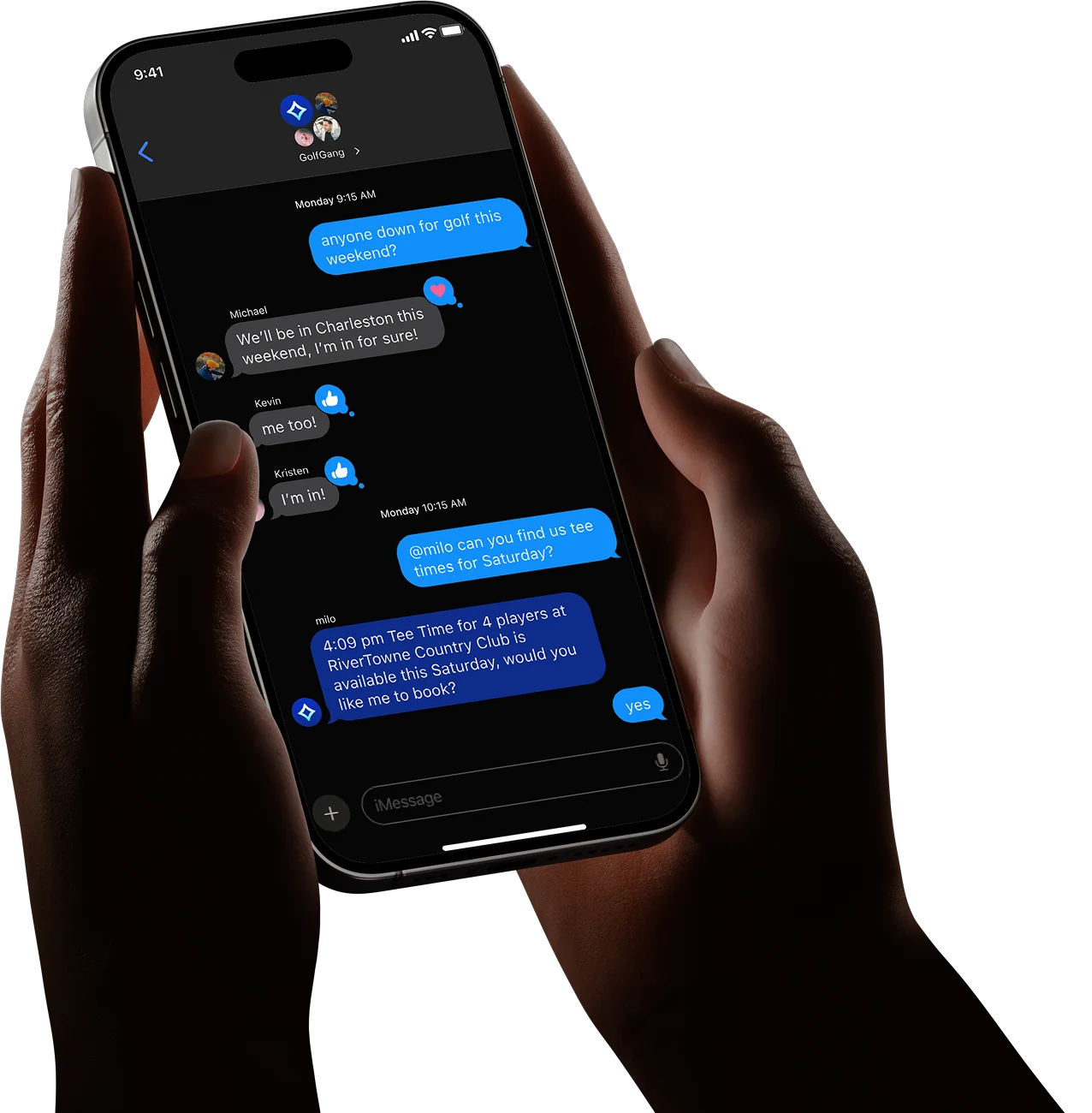 Milo is your personal concierge who lives right in your texts. From coordinating golf tee times and pickleball games to scheduling social plans with friends, Milo handles the back-and-forth for you. No apps, no stress—just instant, effortless planning for your life.